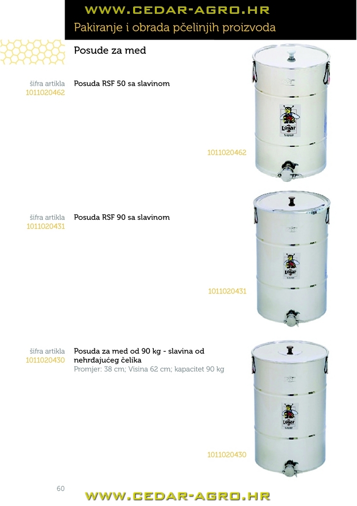 .Posuda za med 35 kg (inox, inox pipa)